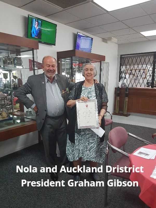Nola was also recognised by Auckland District RSA's Women's Section President Glennis Mills for her achievement, and ECB RSA Women's Section President Sylvana Whyborn, presented some flowers and more cake.